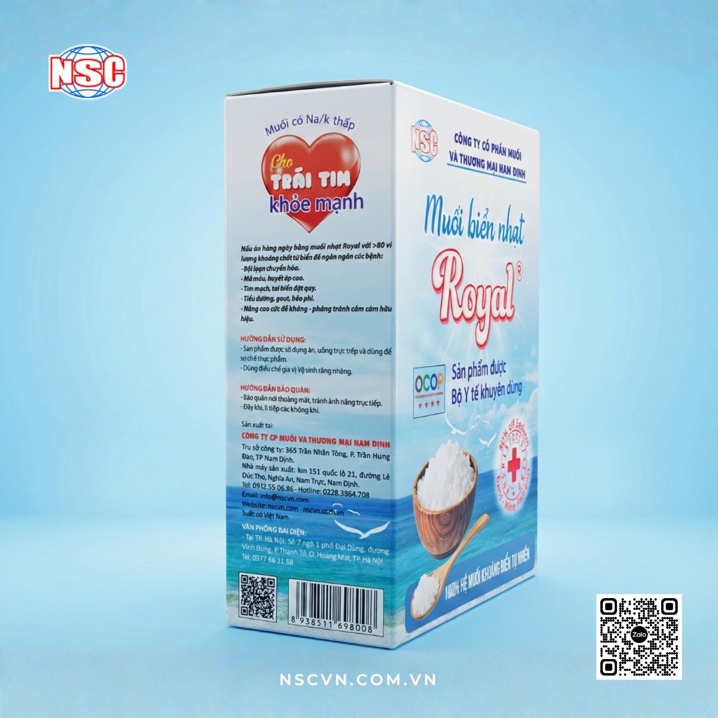 MUỐI BIỂN NHẠT ROYAL BẢO VỆ SỨC KHỎE CỘNG ĐỒNG.( NÓI KHÔNG VỚI BỆNH TẬT) BỞI MUỐI GIÀU KHOÁNG CHẤT CÓ TÁC DỤNG THẢI ĐỘC TỐT NHẤT