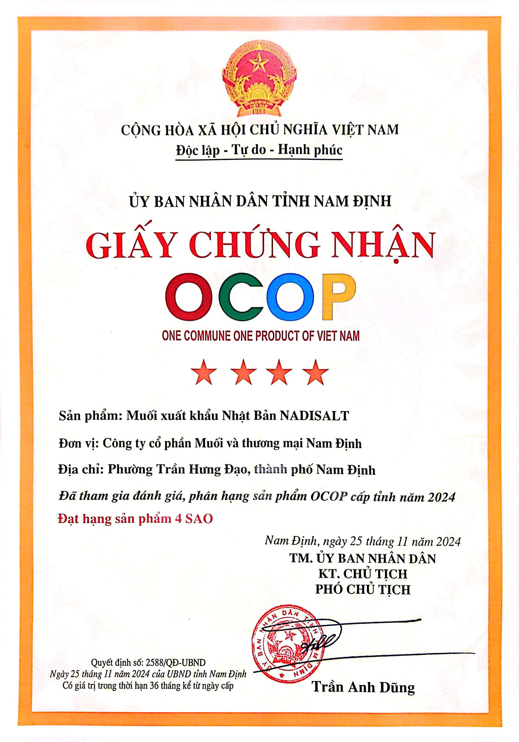 Muối NADI SALT xuất khẩu Nhật của Công ty CP Muối & TM Nam Định là sản phẩm: